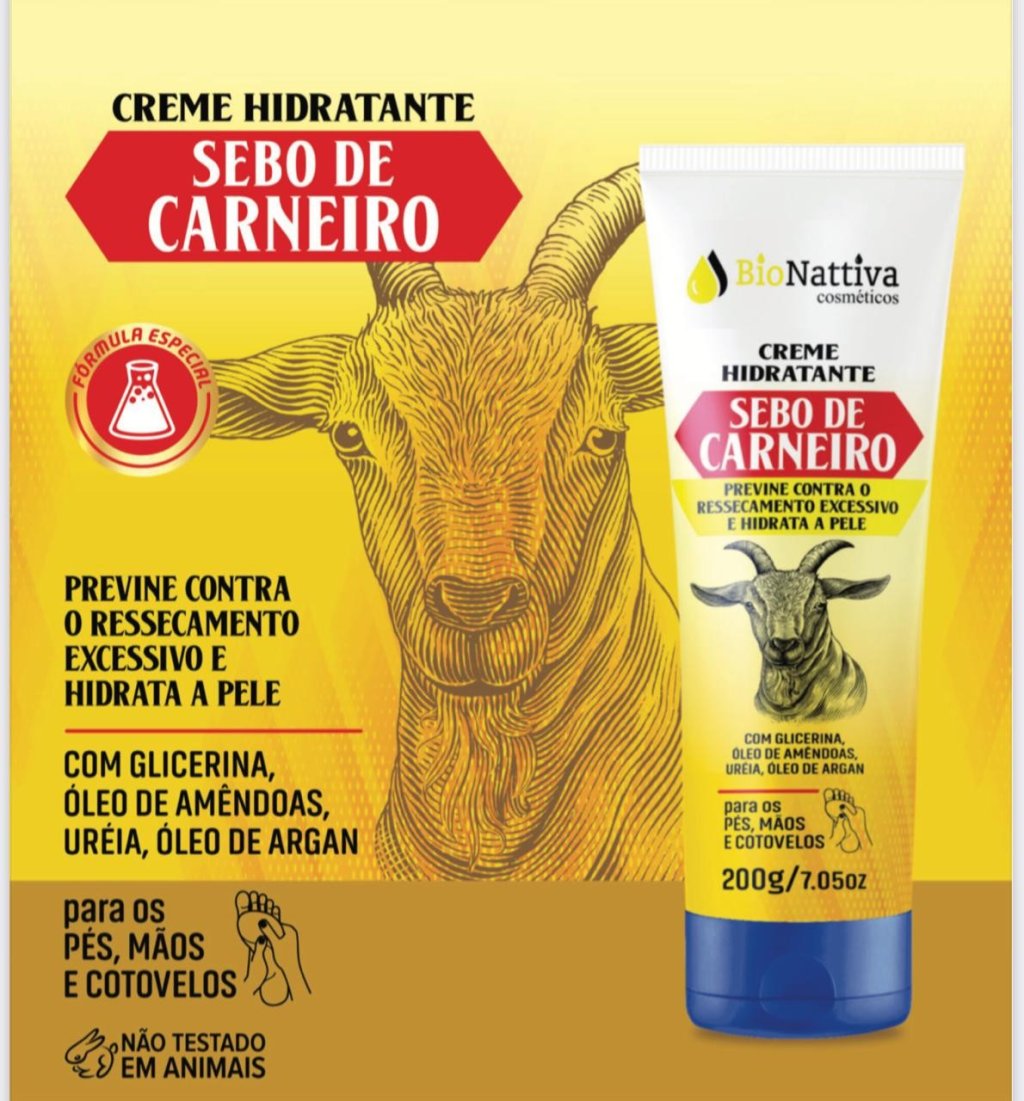 CREME HIDRATANTE SEBO DE CARNEIRO PARA PÉS E MÃOS BISNAGA 200G BIONATTIVA